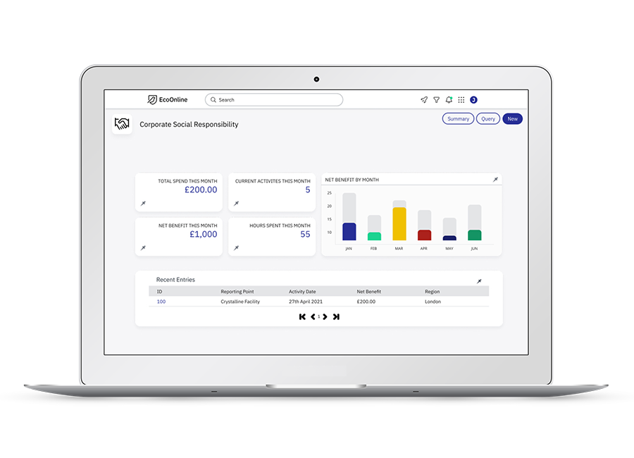 Alle Unternehmen haben auch eine soziale Verantwortung, oft als Corporate Social Responsibility (CSR) bezeichnet. Mit EcoOnline erhalten Sie einen Überblick über die Auswirkungen Ihres Unternehmens auf die Gesellschaft und die erzielte Sozialrendite.