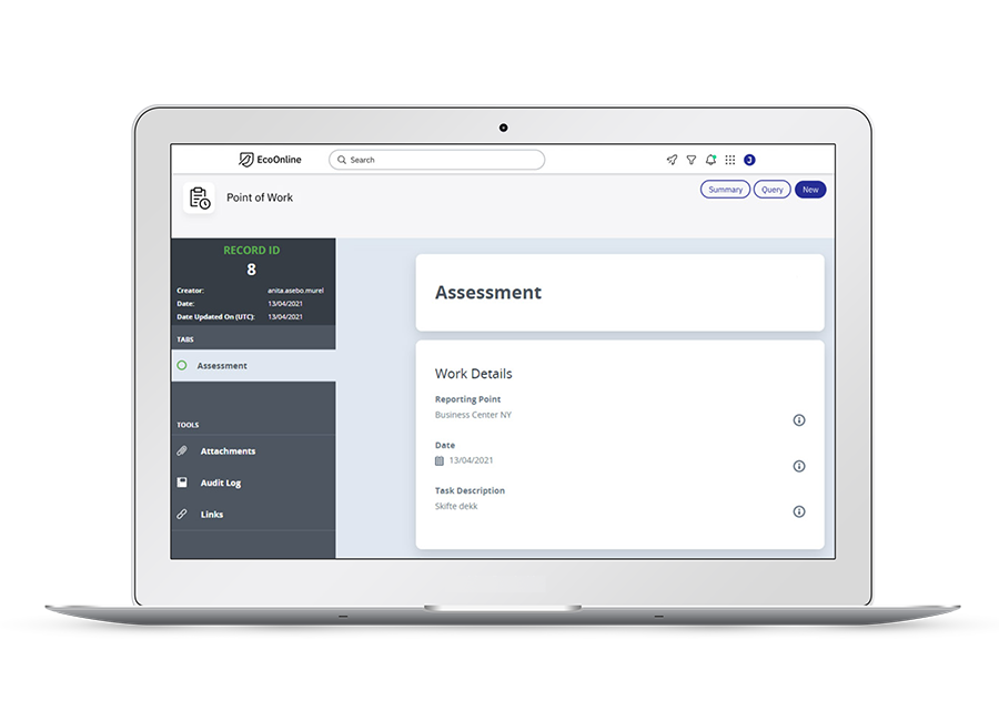 Mit der Point of Work Risk Assessment Software von EcoOnline können Sie Ihre Beurteilung schnell und einfach vor Ort durchführen und die Risiken am Arbeitsplatz kontinuierlich bewerten.