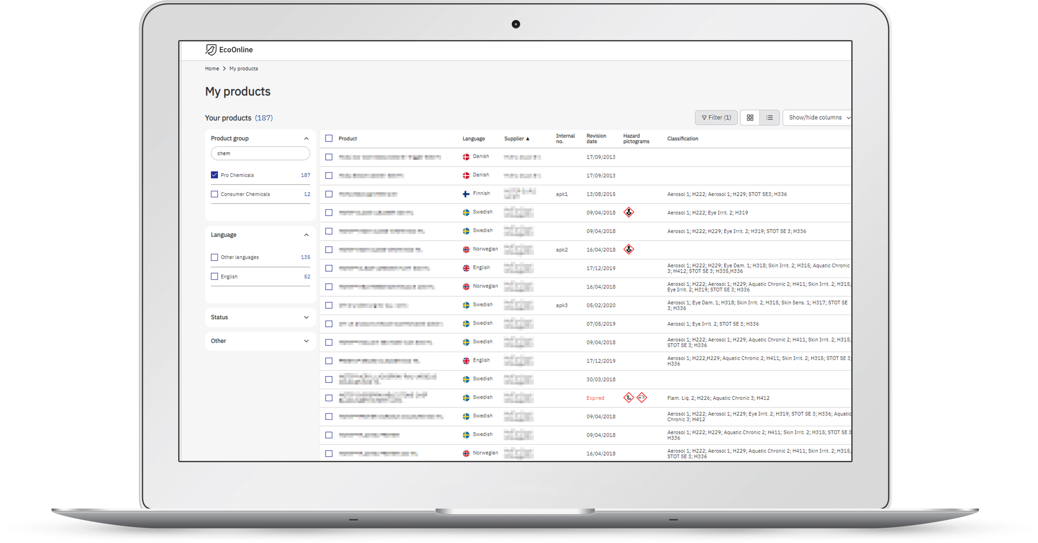 Mit der Reseller-Software von EcoOnline können Sie jederzeit aktuelle Informationen zu Chemikalien anzeigen, Sicherheitsdatenblätter veröffentlichen und die Einhaltung der Vorschriften gewährleisten ‒ vollständig automatisiert.